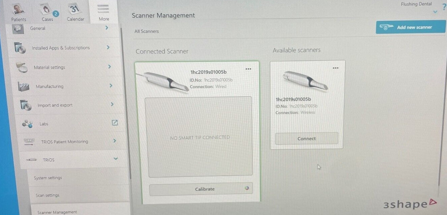 This device was purchased new and installed January 2021. I have a second scanner that staff is using. It is not being used. It is in excellent working condition. I will transfer ownership but buyer is responsible for setup and training with 3Shape.